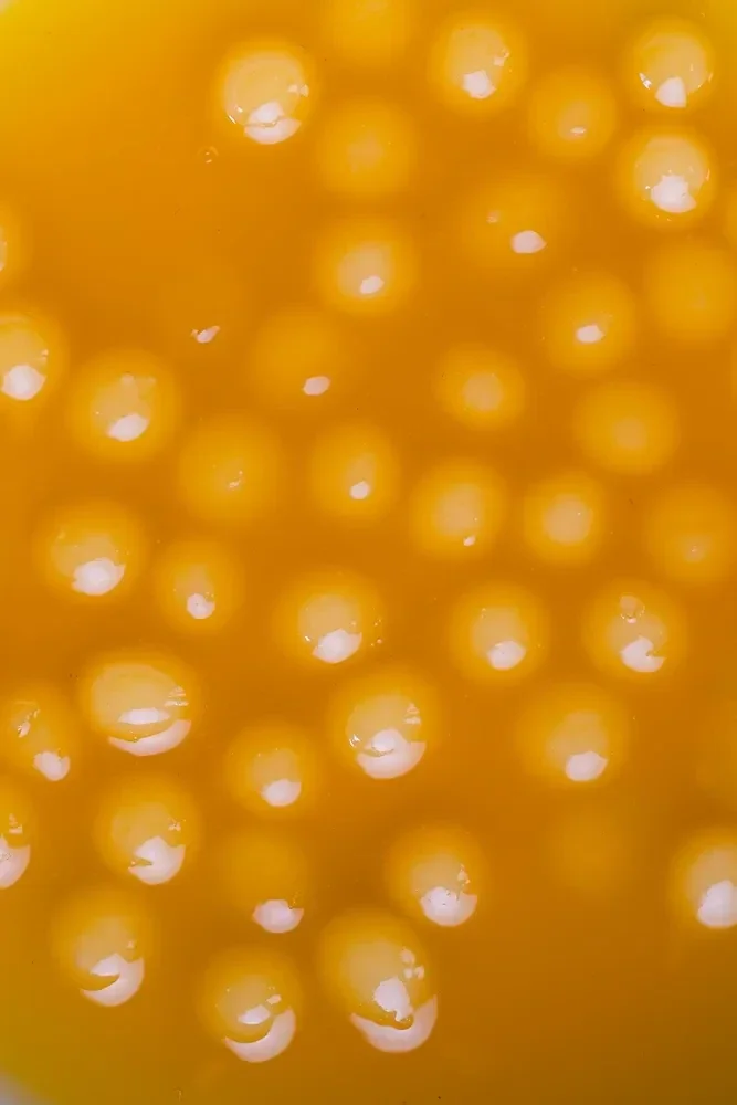 Stroop en geleiparels met perziksmaak (21%) met vloeibare kern met perziksmaak